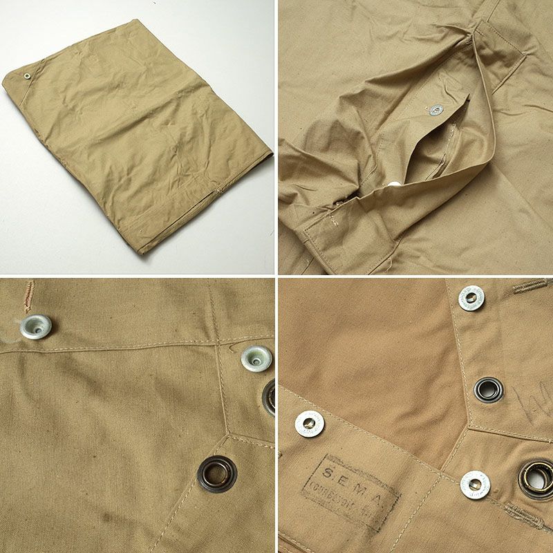 トライアングル 生地 ポンチョ軍幕 ミリタリー アウトドア 軍物 実物 本物 キャンプ フランス軍 テントシート スモール カーキ デッドストック EE032NN