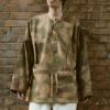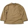 WW2ドイツ陸軍のリバーシブルスモックを再現したアイテム。1943年に採用されたSUMPFTARN(ウォーターパターン)迷彩柄とキャメルカラーのリバーシブル仕様です。コットン製のプルオーバータイプでジャケットの上に着用するためゆとりのあるワイドシルエットです。ノーカラー(襟なし)で首元がスッキリした印象で、胸元はレースアップのおしゃれデザイン。ウエスト部分は紐で絞って調節可能です。ウエストの紐や袖のアジャスターは表裏両面に出せるようになっています。フロントのスリットは中の服にアクセスするための貫通ポケットです。脇には大きな通気用スリットが開いています。