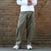東ドイツ軍実物のタンカースパンツです。 やや薄手の生地でウエスト後ろ側がゴムで絞られた穿きやすいパンツです。 ゆったり穿くことができるワイドシルエット。 フロント開閉はボタンフライ。 ポケットは4ヵ所です。 ベルトループとウエスト内側にサスペンダー取り付け用のDカンが付いています。 裾はボタンで絞ることができます。