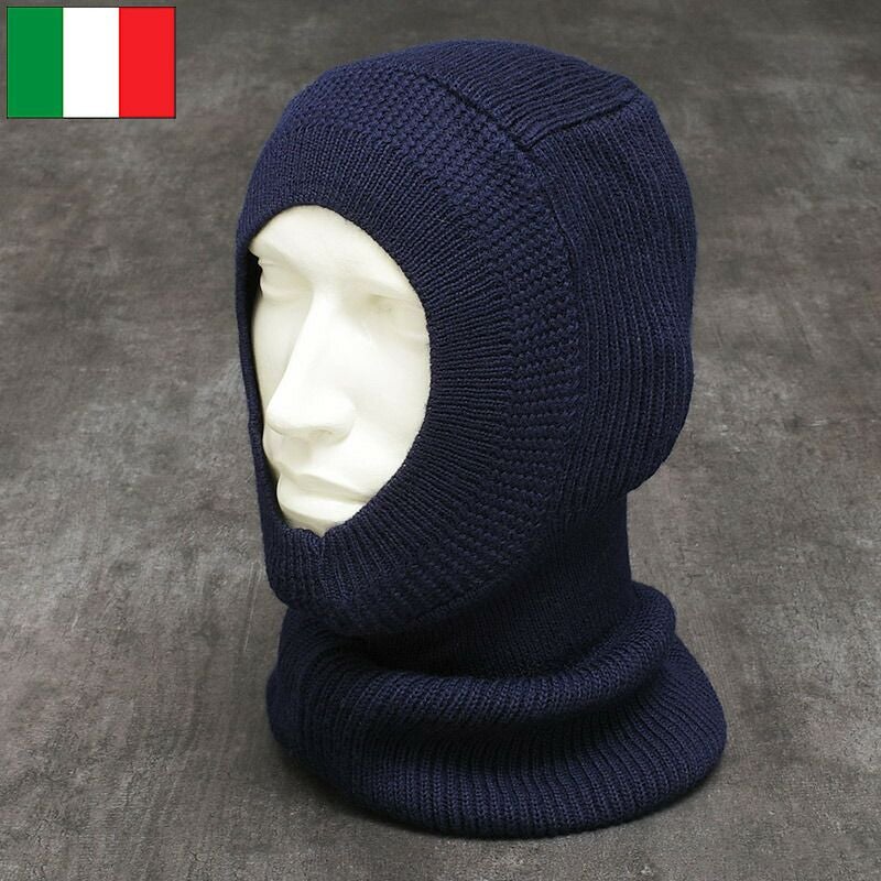 メール便可 イタリア軍 バラクラバ ウール ネイビー デッドストック HC088NN 目出し帽 防寒 保温 帽子 キャップ CAP 寒さ対策 実物ミリタリー 軍物 軍モノ 未使用品