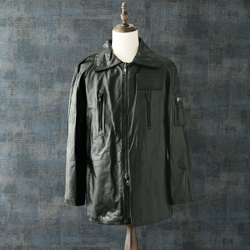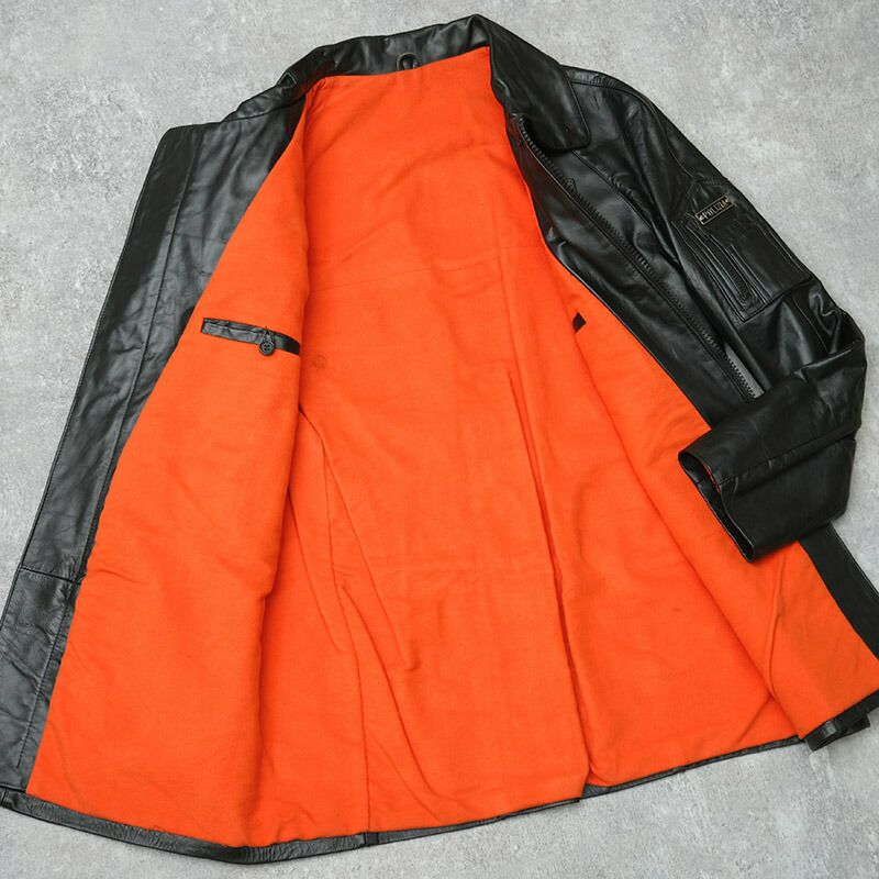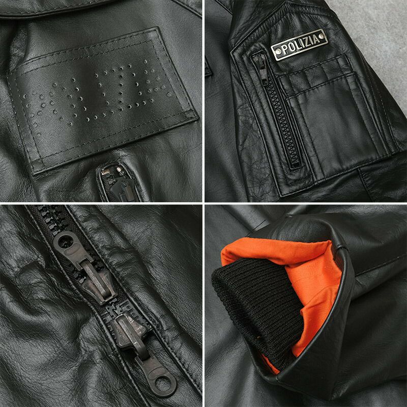 イタリア ポリス レザーハーフコート ブラック タイプC メンズ デッドストック JC197UN 実物 POLIZIA POLICE 警察 ポリスマン 本革 革ジャン ブルゾン アウター ジャケット 防寒 黒 未使用品