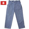 スイス軍 デニムパンツ バックベルトタイプ USED【ブルー】 PP231UN オーバーパンツ ワイド ストレート 太め メンズ ズボン シンチバック オールドスタイル ワークパンツ ワーカー ジーパン ジーンズ 実物ミリタリー 軍モノ 軍物 本物