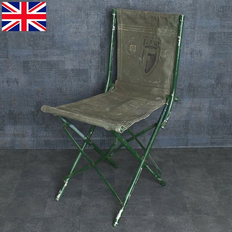 イギリス軍 フィールド フォールディングチェア オールドスタイル USED #1 1944年 英国軍 UK 折り畳み 携帯 携行 椅子 イス チェアー コットンキャンバスシート アルミフレーム アウトドア キャンプ インテリア 実物ミリタリー 軍モノ 軍物 激レア 希少