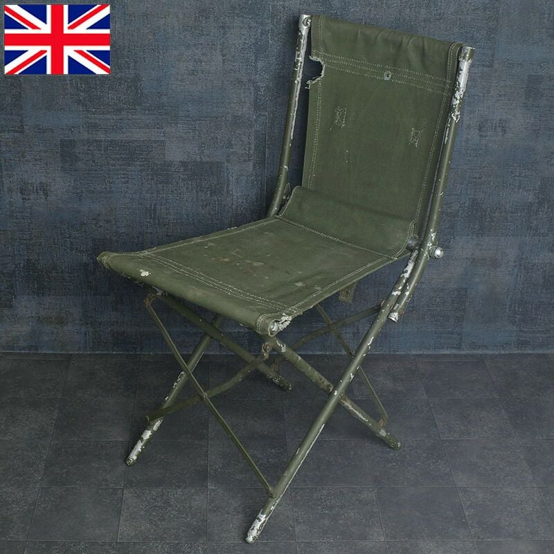 イギリス軍 フィールド フォールディングチェア オールドスタイル USED #2 1951年 英国軍 UK 折り畳み 携帯 携行 椅子 イス チェアー コットンキャンバスシート アルミフレーム アウトドア キャンプ インテリア 実物ミリタリー 軍モノ 軍物 激レア 希少