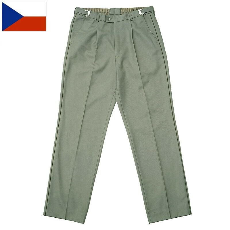 チェコ軍 M-97 ドレスパンツ サイドアジャスター グリーン USED PP462NN M97 ユニフォーム 制服 正装 トラウザーズ ボトムス ズボン サイドライン パレード ポリエステルウール 男性 メンズ 実物ミリタリー 軍物 軍モノ