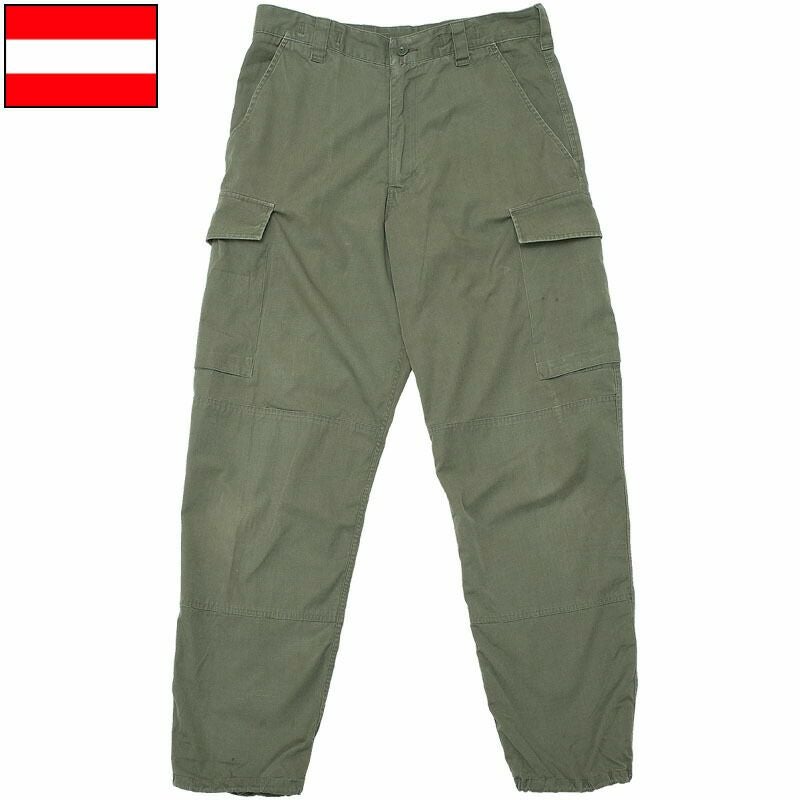 オーストリア軍 フィールド カーゴパンツ リップストップ オリーブ USED PP314UN 実物ミリタリー 軍モノ 軍物 コンバット 戦闘服 軍パン ライトウェイト ワイドパンツ 薄手 ポリコットン テーパード rip-stop