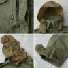スペイン軍実物のフィールドジャケットです。厚手のポリコットン製。前合わせはジッパーとボタンの2重開閉です。襟にジップ開閉で簡易フードが内蔵されています。ポケットはフロント4ヶ所、左腕1ヶ所、内側2ヶ所の他、背中側の下部に左右のジップ開閉で中がつながっている大きなポケットがあります。