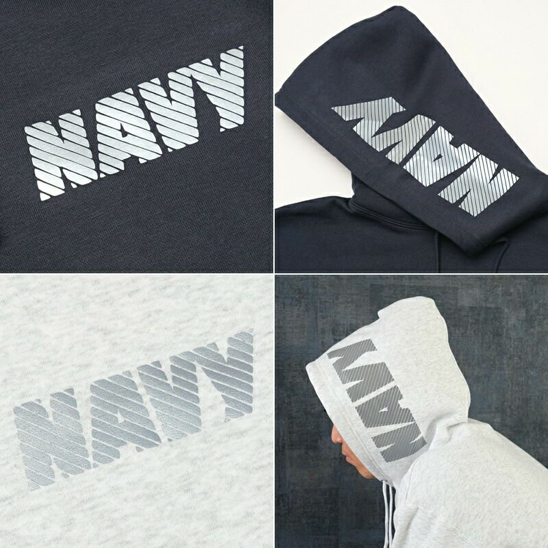 米軍タイプ U.S.NAVY リフレクタープリント プルオーバースウェットパーカー フードプリント