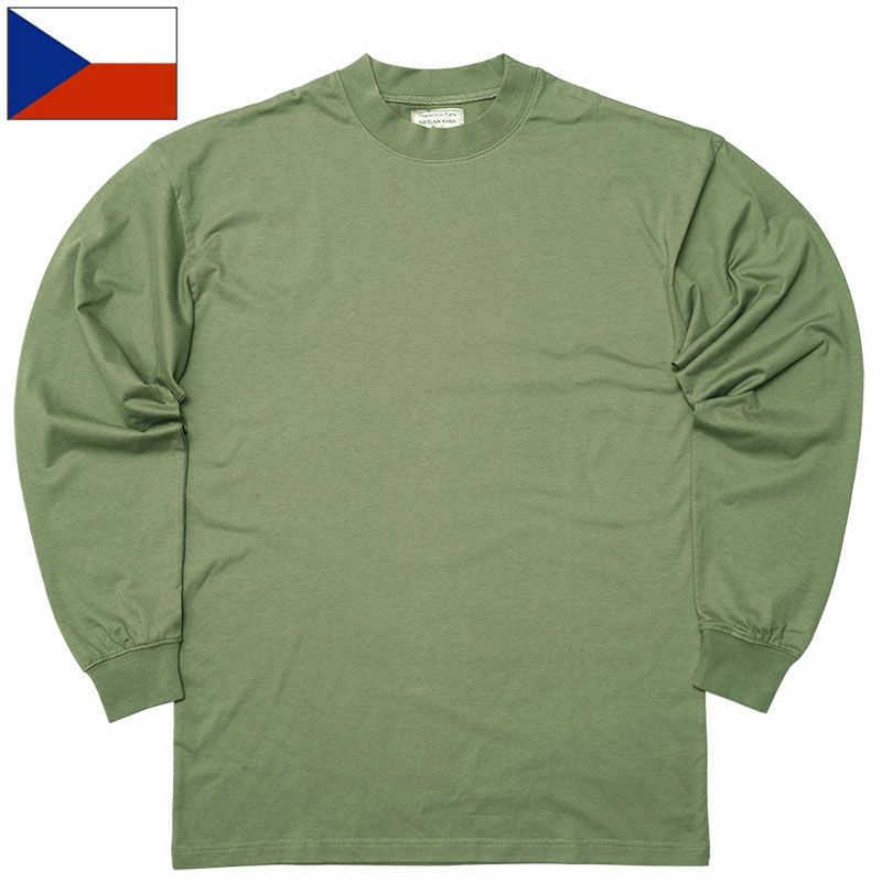 1点ならメール便可 チェコ軍 トレーニング Tシャツ 長袖 グリーン デッドストック JU081NN
