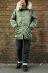 極寒地の地上勤務用として使用されており、卓越した保温性や機能性を誇るナイロンヘビーツイルN-3Bをタイトシルエットにリデザイン。フロントはジッパーの上をボタンで留める仕様で、大きめなロゴ入りジッパーは高い位置まで上がり、内側がボアになったフェイクファー付の大きめフード、ジップの上からボタンで留めるフロント、袖口内側のニットカフが暖かさをキープ。 また、内側にはドローコードを完備し、ファーは取り外し可能です。左袖には、本物の証であるALPHAタブとエマージェンシーキットを収納するユーティリティーポケットが装備されています。