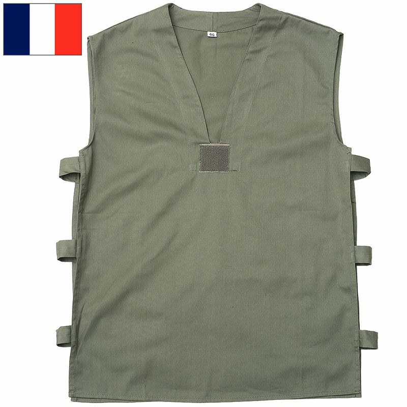 1点ならメール便可 フランス軍 GAOベスト オリーブ HBT デッドストック JS191UN ノースリーブ Vネック 薄手 コットン ヘリンボーンツイル シャツ オリーブグレー 仏軍 フレンチアーミー 実物ミリタリー 軍物 軍モノ 未使用品