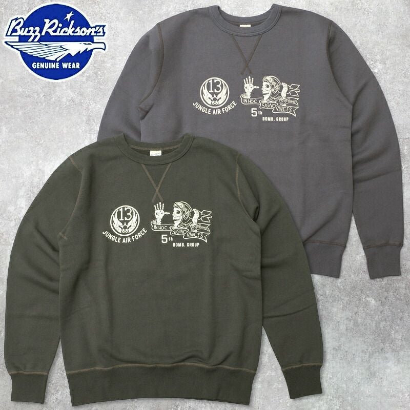 BUZZ RICKSON'S バズリクソンズ #BR69693 セットイン クルーネック スウェット シャツ『5th BOMB. GROUP BOMBER BARONS』メンズ 男性 トレーナー トップス アメカジ カジュアル スエット シンプル プリント 長袖 ロングスリーブ 春 秋 冬