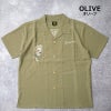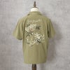 HOUSTON春夏の定番スーベニアシャツシリーズ。肌触りの良いシャイニーな生地を裏使いすることで、快適に着用可能。刺繍は人気の高いタイガー&ドラゴン柄を採用。