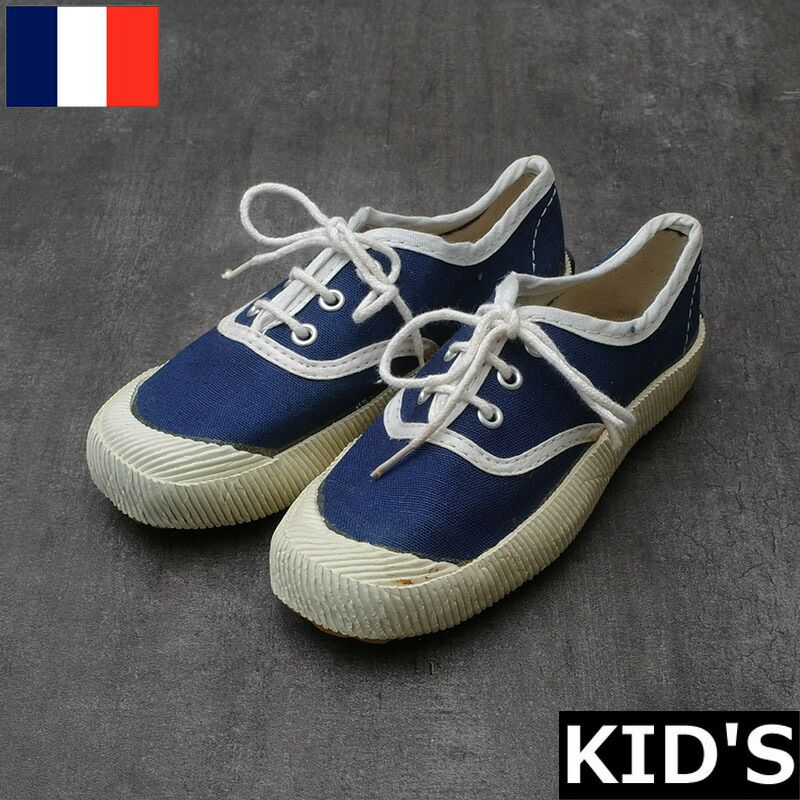 4. フランス マリーン デッキシューズ ネイビー キッズ デッドストック FS071NN マリン ローカット コットンキャンバス ローテク スニーカー 靴 くつ カジュアル ブルー 子供用