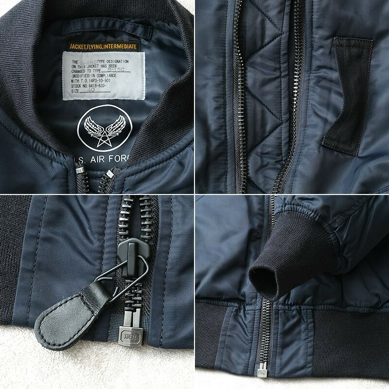 エアフォースネイビーブルー メンズ ミリタリージャケット ナイロンジャケット アーミー 長袖 トレーニングウェア スポーツウェア ウィンドブレーカー ベンチレーション 復刻レプリカ