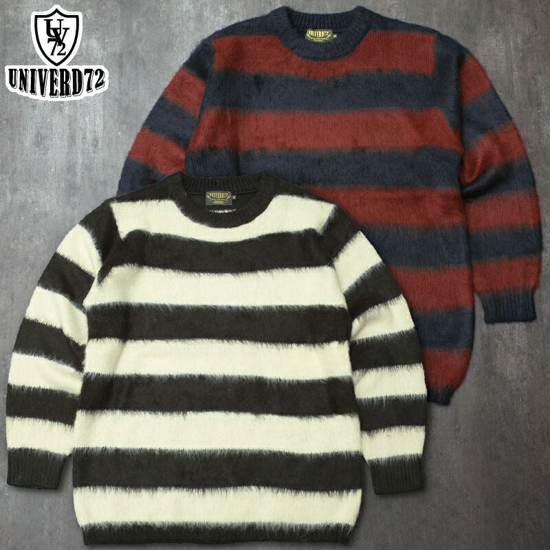 UNIVERD72 ユニバード72 #22333 長袖 モヘアタッチ起毛セーター『BORDER』メンズ 男性 トップス クルーネックセーター 羽織り ロングスリーブ カジュアル 春 秋 冬 モヘヤ ルーズシルエット シンプル ボーダー 横縞