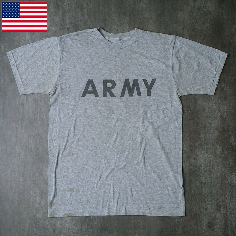 メール便可 米軍 ARMY トレーニング Tシャツ 半袖 グレー USED JT078UN アメリカ軍 米陸軍 GI US フィジカル フィットネス クルーネック 丸首 スポーツ ランニング ジョギング カジュアル アメカジ アーミーロゴ ショートスリーブ 実物ミリタリー 軍物 軍モノ