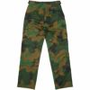 オランダ軍実物のコンバットパンツです。米軍のM-65パンツやフランス軍のM-47パンツに比べて細身で太すぎず細すぎないきれいなシルエットです。 やや薄手ですがハリのあるポリコットン素材でしっかりとした生地感です。ウエスト両サイドのマジックテープアジャスターの調節によりウエストの実寸は10cm程前後します。フロントはジッパー開閉。ポケットは両サイドの脇ポケットとカーゴポケット、右後ろ、右裾ナイフポケットの計6ヶ所です。