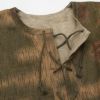 第二次世界大戦時にドイツ軍において支給されたリバーシブルスモックを再現したアイテム。 SUMPFTARN(スワンプターン、湿地帯迷彩パターン)柄と生成りのリバーシブル仕様となっています。 ジャケットの上に着用するためゆとりのあるワイドシルエットです。 生地は軽くて柔らかい質感のリネンヘリンボーン素材。 ノーカラー(襟なし)で首元がスッキリした印象で、胸元はレースアップのおしゃれデザイン。 ウエスト部分は紐で絞って調節可能です。 ウエストの紐や袖のアジャスターは表裏両面に出せるようになっています。 フロントにある2つのスリットは中の服にアクセスするための貫通ポケットです。 脇には大きな通気用スリットが開いています。