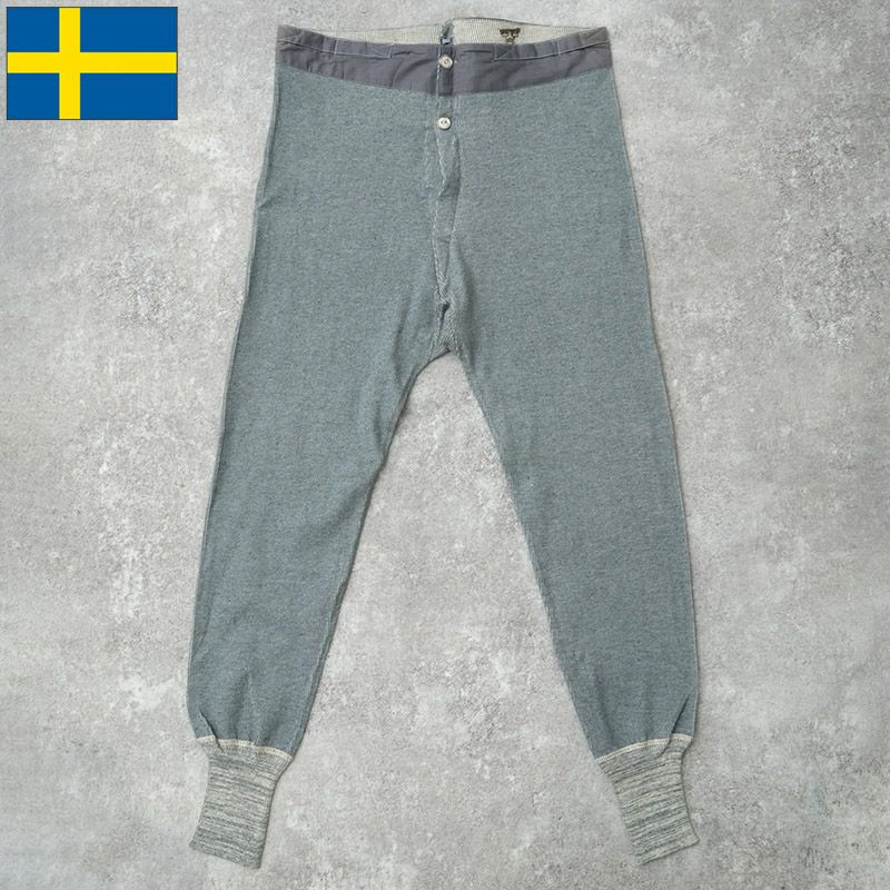スウェーデン軍 アンダーパンツ ブルーグレー デッドストック PP494NN SWD ライナー インナーパンツ パッチ ズボン アンダーウェア ステテコ ももひき リブ生地 冬 ウインター 保温 パジャマ 部屋着 男性 メンズ 実物ミリタリー 軍物 軍モノ 未使用品