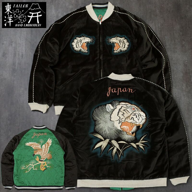 TAILORTOYO テーラー東洋 #TT15809 東洋エンタープライズ60周年スペシャルエディション Mid 1950s Style 別珍×アセテート リバーシブル スカジャン ステンシルペイント『TIGER HEAD×EAGLE』港商 スーベニア メンズ 男性 アウター ブルゾン ジャケット アメカジ 刺繍