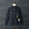 長年定番アイテムとして展開していた9オンスのウォバッシュストライプ生地のワークコートをリニューアルしてリリース。シンプルながらガチャポケ仕様など、ヴィンテージのディテールが備わった第二次世界大戦後のストアブランド系のワークコートとなっている。台襟が省略される前のモデルで、右胸はフラップポケット、左胸は3in1ポケット仕様。大型の腰ポケットは当て布付きで、内ポケットも右胸に装備している。肩や脇、袖ぐりなどは3本針巻縫いで頑丈な作り。