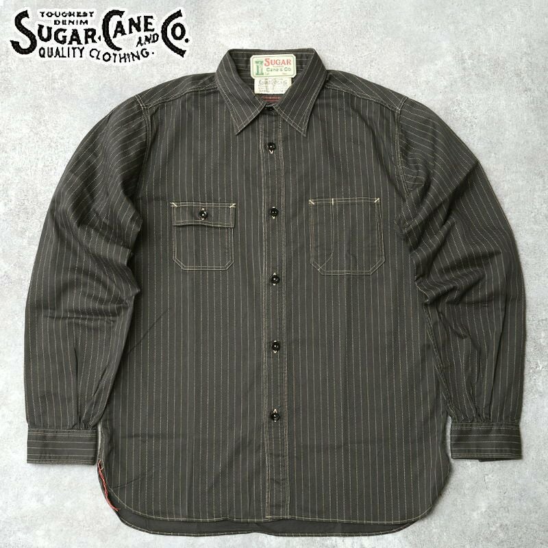 SUGARCANE シュガーケーン #SC29585 FICTION ROMANCE 8.5OZ. ブラック ウォバッシュ ストライプ 長袖 ワークシャツメンズ 男性 トップス ロングスリーブ ワークウエア カジュアル アメカジ 春 秋 冬
