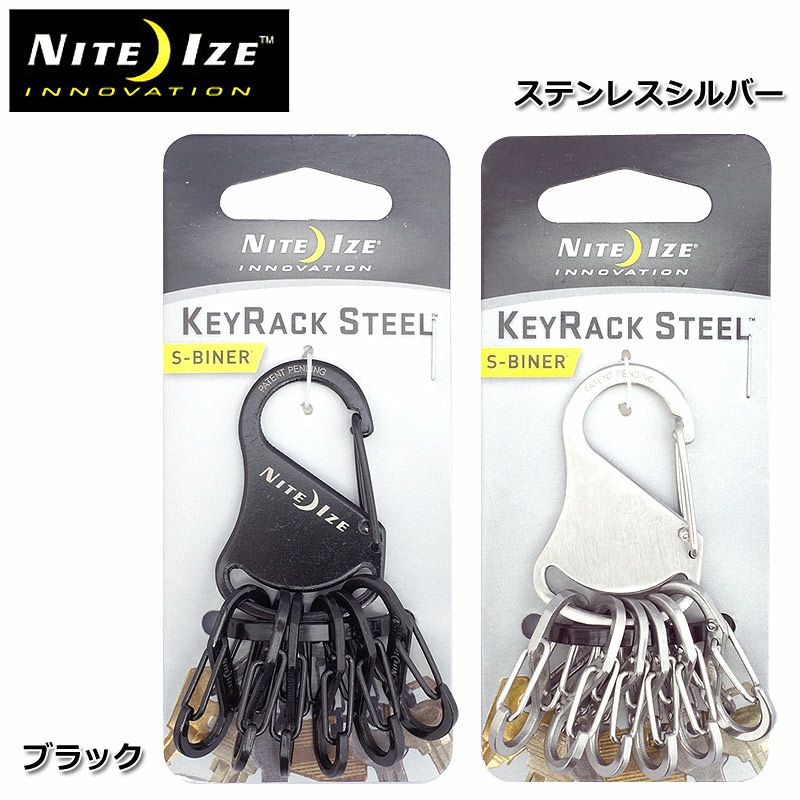 5. 1点ならメール便可 NITE IZE ナイトアイズ #KRS-03 キーラック ステンレススチール エスビナー付き カラビナ キーホルダー NITEIZEブラックシルバー アウトドア 物掛け キーリングおしゃれS字フック フック