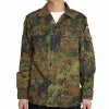 ドイツ連邦軍で90年代ごろから採用されているフレクターパターンカモのシャツジャケットです。 基本5色パターンで構成されている独特なカモフラージュ柄が特徴的な一枚です。フロントはジッパーとスナップボタン仕様で、両胸と左袖にはフラップポケットが付いています。 ポリコットンの厚すぎない生地感は丈夫で羽織りやすく、落ち着いた色味が様々なスタイルで活躍してくれるシャツジャケットです。