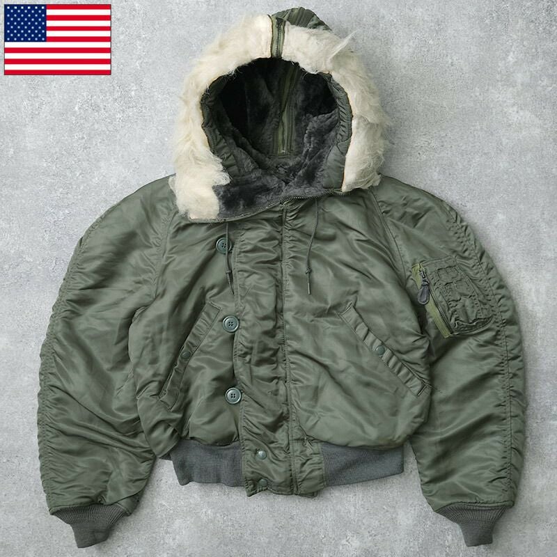 アメリカ軍 GI US AIR FORCE エアフォース 空軍 N2B ヘビーゾーン パイロット ショート丈 アウター パーカー ブルゾン 上着 中綿入り 防寒 保温 フード付き カジュアル ナイロン セージ 実物ミリタリー 軍物 軍モノ