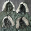 米軍実物のN-2Bフライトジャケットです。N-3Bと同時期に開発されたヘビーゾーン(-10℃~-30℃)用フライトジャケット。操縦用として作られている為、狭い操縦席でも動きを妨げないよう着丈は短く、大型のフードはジッパーによる左右分割式となっています。寒さを防ぐ為、フロントジッパーは首の上まで閉めることができます。フロントジッパーの内側と外側の両方に比翼が配置され、風の侵入を防ぎ、保温性を高めます。 左右のポケットはどちらも通常のポケットと貫通ポケットが付いています。