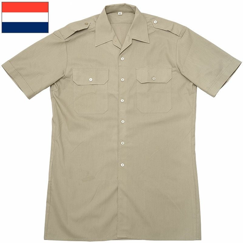 オランダ軍 マリーン サービスシャツ 半袖 ベージュ デッドストック JS222NN ショートスリーブ ドレスシャツ ユニフォーム 無地 2ポケット 両胸ポケット カジュアル 男性 メンズ 実物ミリタリー 軍物 軍モノ 未使用品