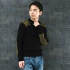 オランダ コマンドセーター オリーブを黒染めしたアイテムです。 伸縮性のあるリブ編みで、男女問わず着用できます。 ウール素材のため保温性能も抜群。肩のあて布、エルボーパッチやエポレットなどミリタリーでは定番のデザインであるコマンドセーターのディテールとなっております。 袖口は腕の長さにあわせて手首部分をロールアップできます。