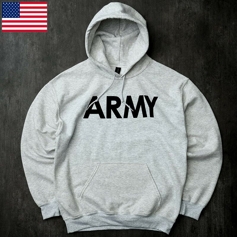 米軍 U.S.ARMY スウェットパーカー 杢ホワイト ARMYロゴ GILDAN製 デッドストック JU087NN アメリカ軍 米陸軍 PX プルオーバー フーデッドパーカー フーディー シャツ ギルダン フィジカル スポーツウェア 裏起毛 保温 カジュアル 実物ミリタリー 軍モノ 軍物 未使用品