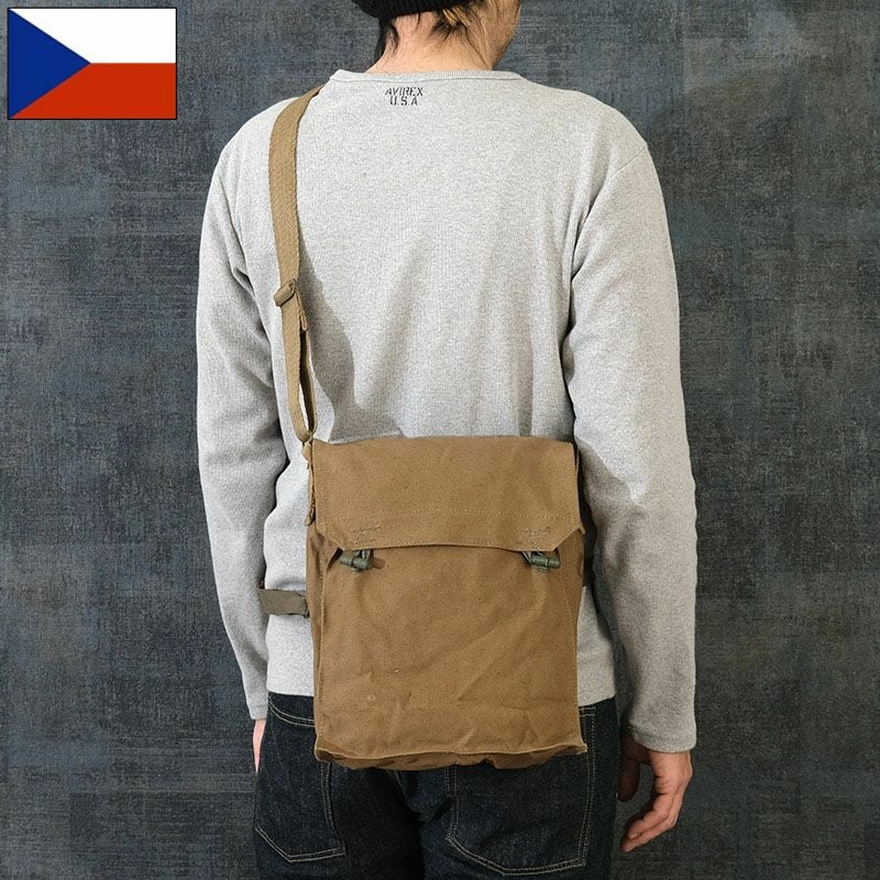 チェコ軍 キャンバス ショルダーバッグ ウッドボタン デッドストック BS143NN カバン 鞄 BAG スクエアシルエット 四角形 縦型 コンパクト 斜め掛け コットン ウッド釦 カジュアル 実物ミリタリー 軍モノ 軍物 未使用品
