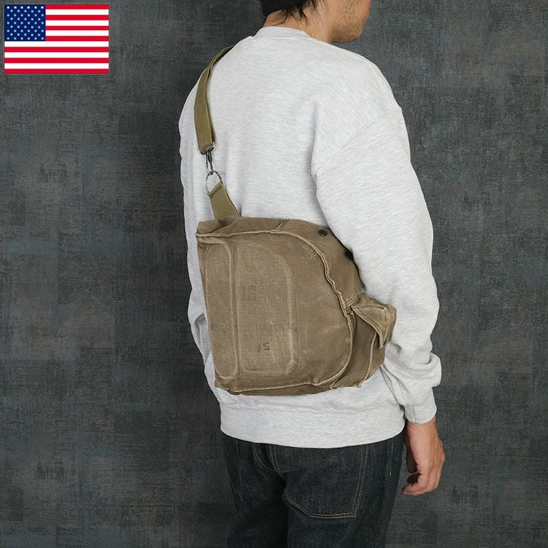 米軍 M17 ガスマスク ショルダーバッグ オリーブ USED BS214UN アメリカ軍 GI US M-17 BAG カバン 鞄 収納 携行 ケース 個人装備 コットンキャンバス 実物ミリタリー 軍モノ 軍物
