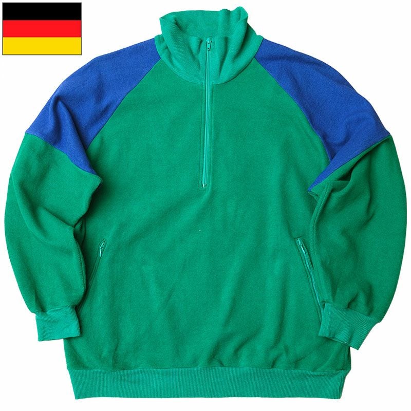 ドイツ ポリス ジムジャケット ハーフジップ グリーン USED JJ376UN POLICE POLIZEI 警察 フィジカル ジャージ トラックジャケット スポーツ ランニング ジョギング トレーニングウェア プルオーバー レトロ カジュアル 緑
