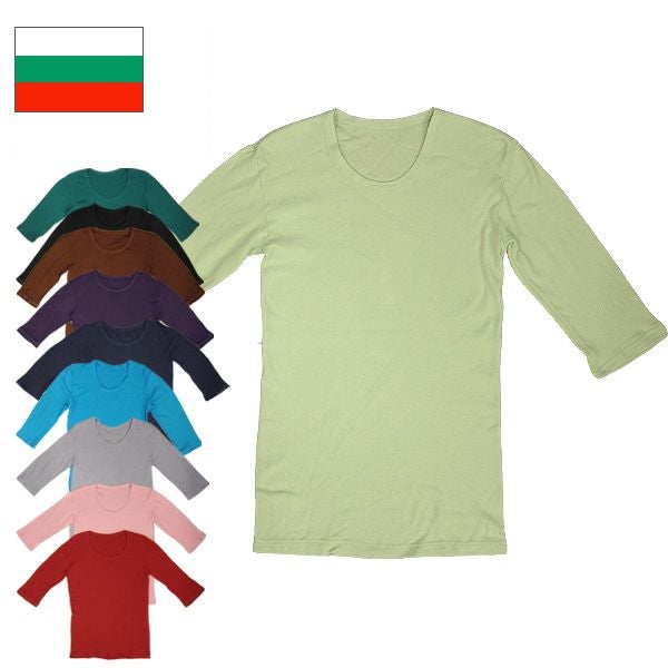 4. メール便可 ブルガリア軍 Uネックアンダーシャツ 七分袖 染め デッドストック JU035ND 10色