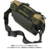 収納力に優れたウエストパック。腰着用部に沿ってフィットするデザインとなっており、さらに背面はメッシュクッションが備わっているため、大きめサイズのウエスパックながら、優れた着用感を実現しています。もちろん斜めかけも可能。メインコンパートメントやフロントポケットのほか、両サイドにメッシュポケットが用意されています。さらに外周に設置された1インチウェビングには、カラビナを提げたり、ポーチを取り付けたりと、必要に応じた拡張が可能なデザインとなっています。 バックルストラップには物を挟み込んで持ち運ぶことができ、収納物が少ないときは、このストラップを絞り込むことで荷室を圧縮でき、荷物が中で動き回るのを抑制することができます。