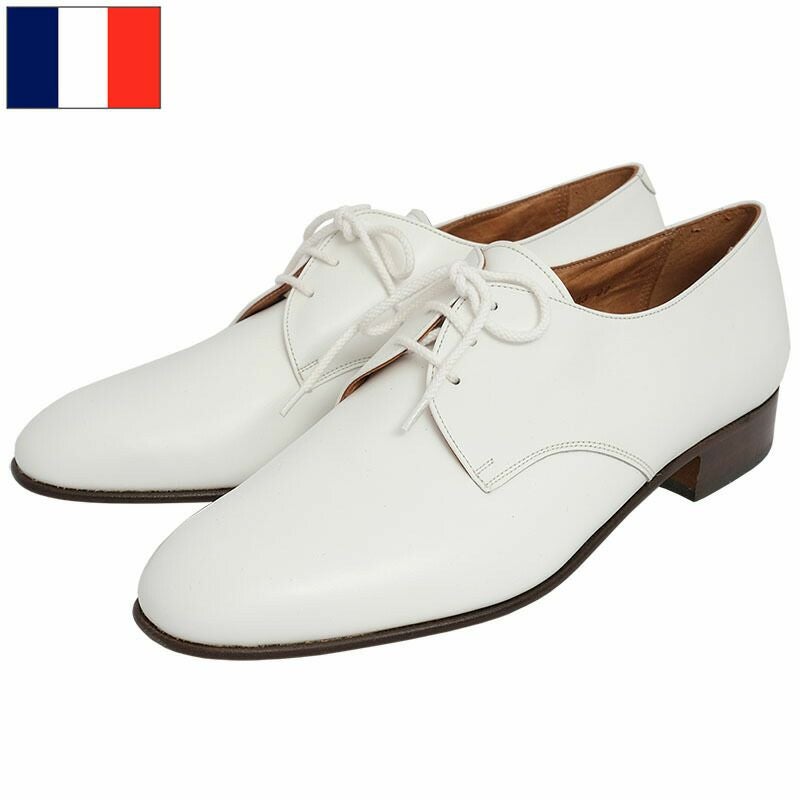 フランス軍 レザー ドレスシューズ ホワイト デッドストック FS067NN 仏軍 パレード サービスシューズ オフィサー プレーントゥ レースアップ 革靴 本革 外羽根式 白 実物ミリタリー 軍物 軍モノ 未使用品