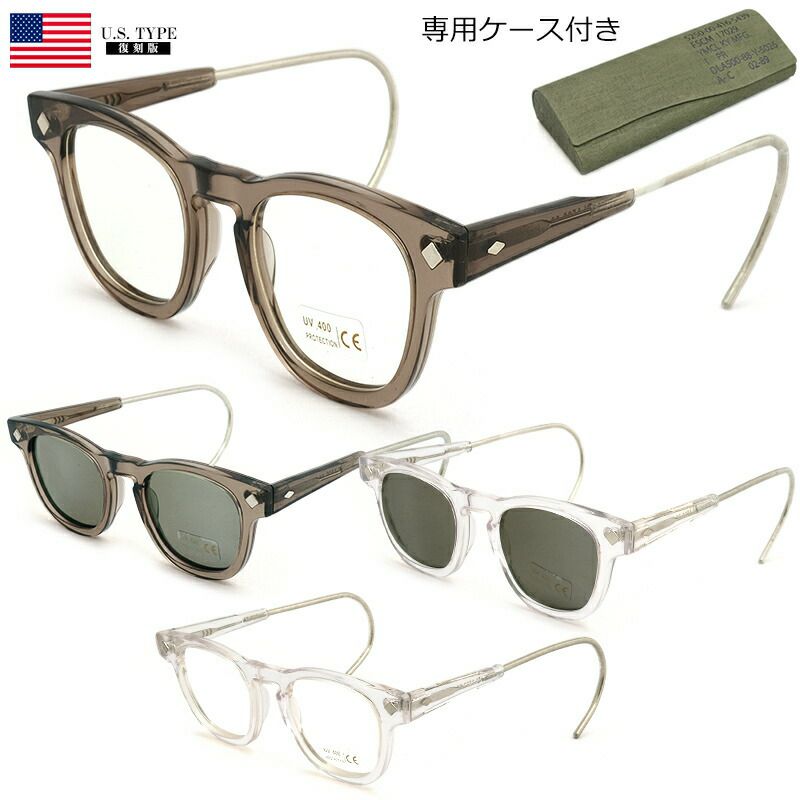 第一次世界大戦中にアメリカ軍は、視力の低い兵士に格安で眼鏡を提供するプログラムを開始し、無料で支給されていました。 戦間期には予算の都合もあり、一旦無償支給は停止しますが、第2次世界大戦時に復活し現在にいたります。 米軍で支給される眼鏡は標準処方眼鏡(RPG)と呼称され、入隊時の検眼で眼鏡が必要な兵士の新兵訓練期間、あるいは士官学校候補生の間に作成され、部隊に配備されるまでに支給されました。 1910年代から1940年代までは金属フレームの物が支給されましたが、アレルギー等の問題もあり、1950年代からはセルロース製の物が支給されました。1968年まではグレーのフレーム、以降は黒のフレームが採用され、1970年代半ばから、有名なS9*(BCG)フレームの支給が開始されました。S9フレームは初期のロットは黒でしたが、2012年に支給が停止するまでブラウンの物が支給されました。
