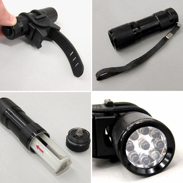 バイセクル バイシクル 懐中電灯 自転車用 9LEDライト 【ブラック】【シルバー】