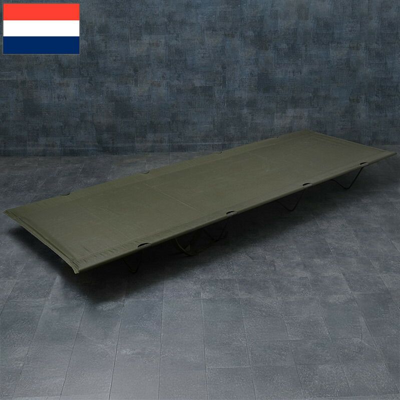 オランダ軍のロータイプのコットです。 キャンプなどのアウトドアシーンにおいて地面の状況を気にせず寝ることができます。 ローベンチや荷物置きとしてもご利用いただけます。 フレームと脚は丈夫なスチール製。 パーツごとに分解できるため、省スペースでの収納、持ち運びが可能です。 ※組み立ての際はフレームのバーをシートの両サイドに通した状態で脚をフレームの穴に差し込むためある程度の力が必要です。 作業時は周囲に十分ご注意のうえ、慎重に行ってください。