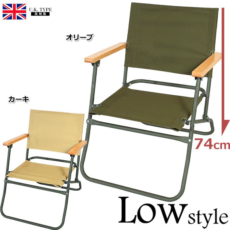 イギリス軍タイプ フォールディングチェアー ロースタイル 折りたたみ椅子 大型商品 EE648YN