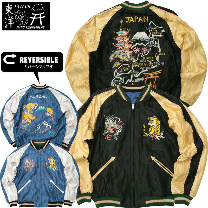 20%OFF!■TAILORTOYO テーラー東洋 #TT15542 Early 1950s Style アセテート リバーシブル スカジャン『JAPAN MAP×GOLD DRAGON』メンズ 男性 アウター ブルゾン スーベニア スーヴェニア ジャンパー ジャケット ミリタリー アメカジ 和柄 刺繍
