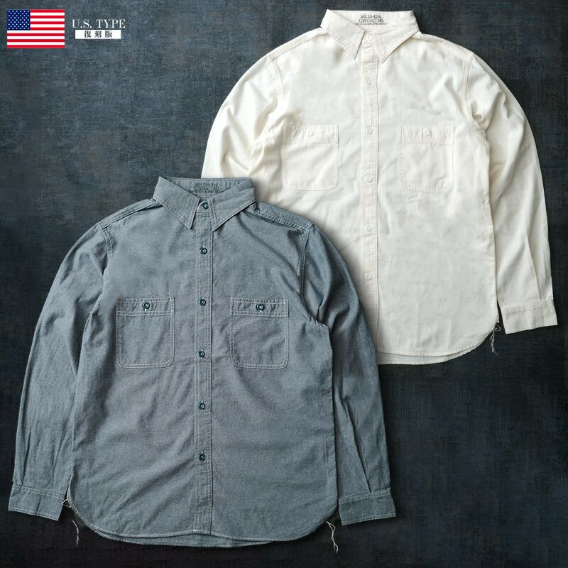米軍タイプ シャンブレーシャツ 無地 長袖 JS227YN