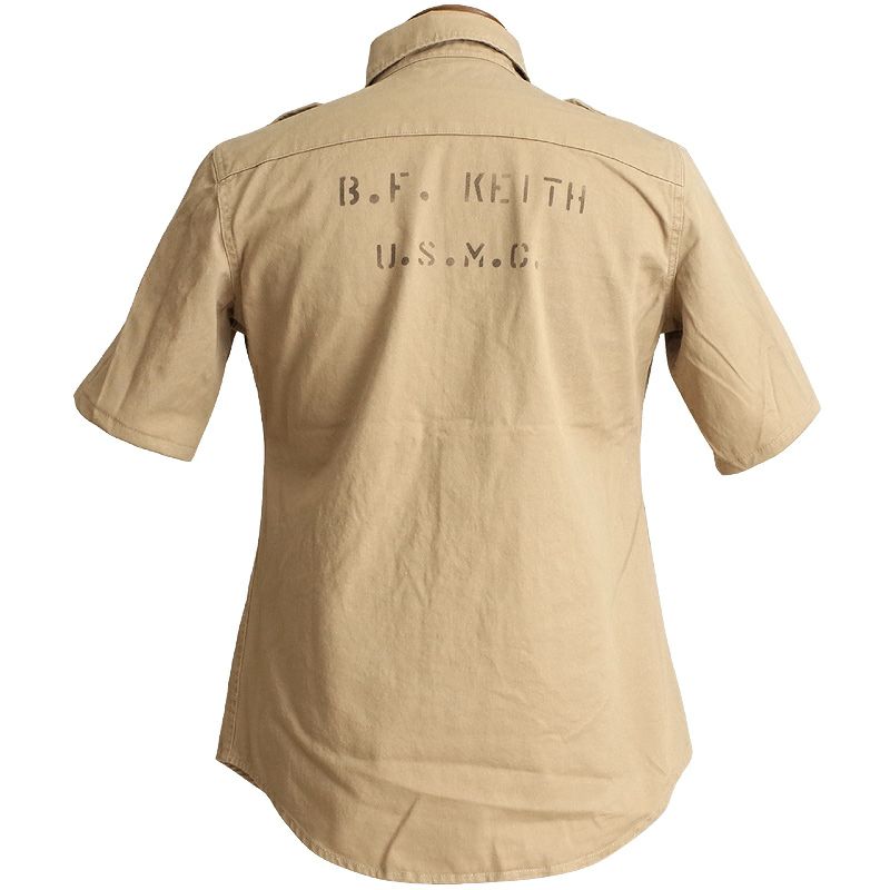 米軍タイプ コットンチノシャツ 半袖 『USMC』ステンシル ミリタリーシャツ 新品
