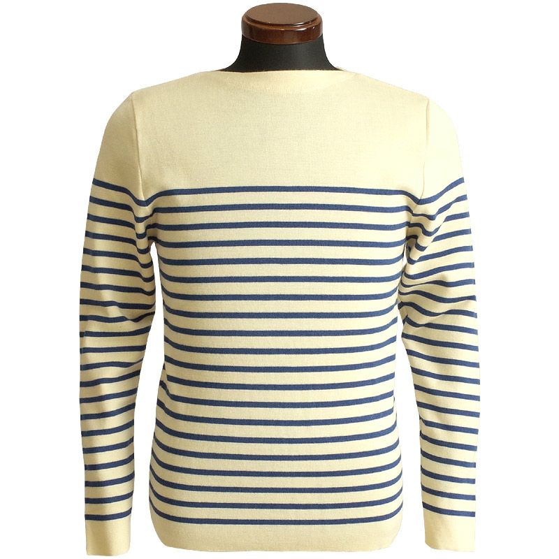 フランス海軍タイプ ホワイト ブルー ネイビー メンズ ミリタリーセーター ハイゲージ ボートネック レプリカ