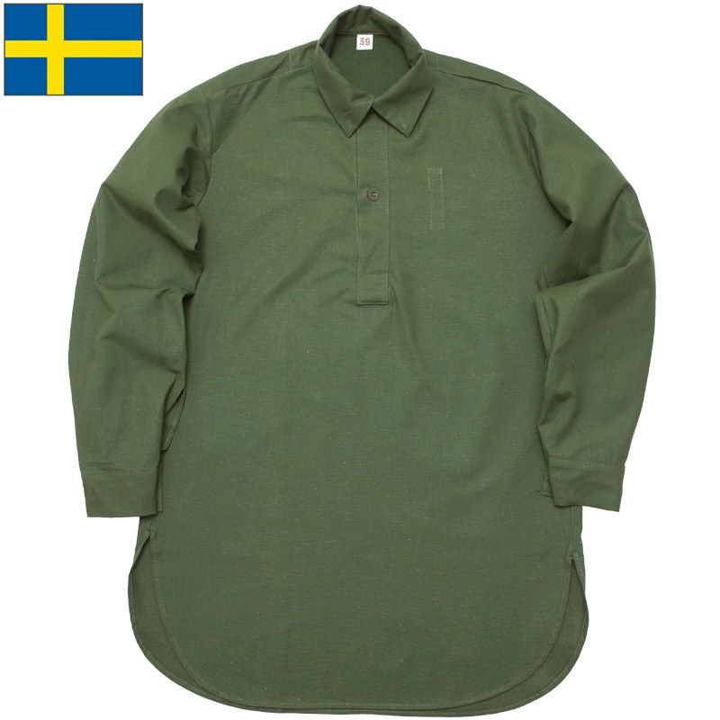 スウェーデン軍 M-55 プルオーバーシャツ 長袖 デッドストック JS027NN M55 メンズ コットンシャツ ミリタリーシャツ カジュアルシャツ SWD ロングスリーブ
