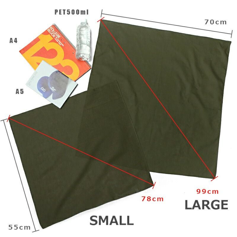 大判のバンダナでハンカチとしてや、首や頭に巻いたり、お弁当箱を包んだりと、いろいろなシーンで活用できるアイテムです。